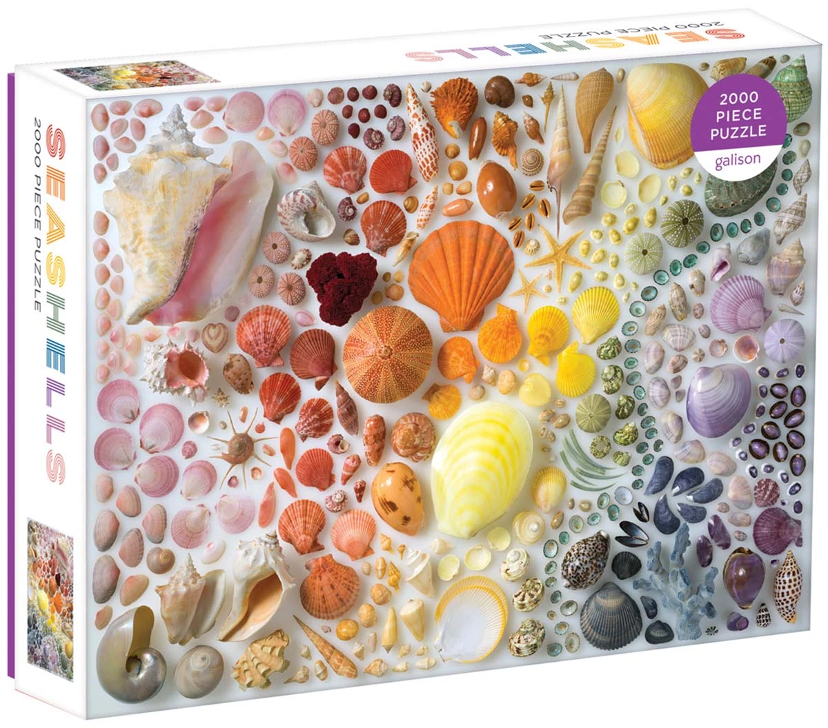 Galison’s Rainbow Seashells 2000 Piece Puzzle features seashells of all shapes and sizes styled in waves of color. Galison puzzles are packaged in matte-finish sturdy boxes, perfect for gifting, reuse, and storage.