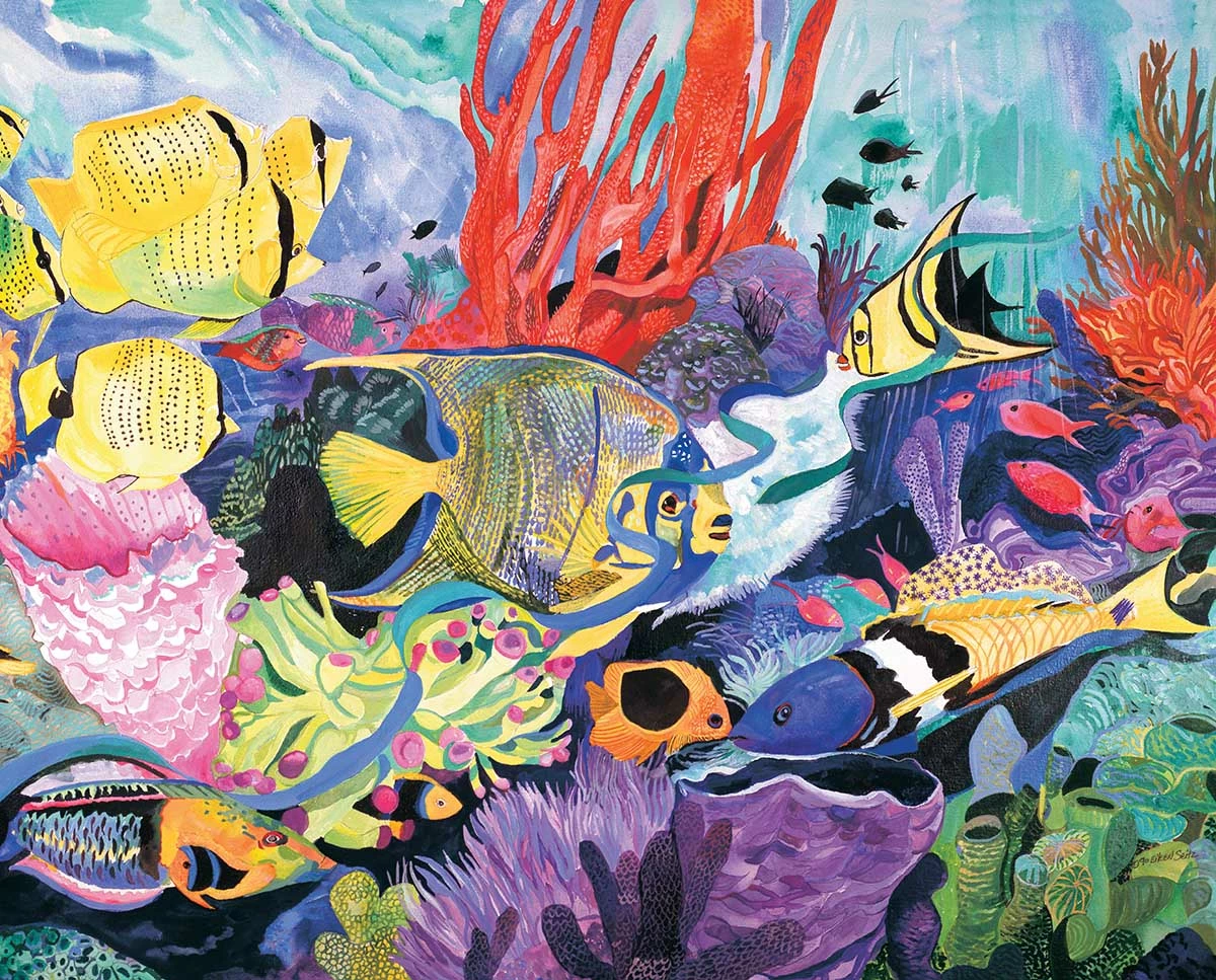 Eileen Seitz has painted a rainbow of colors in this gorgeous reef puzzle. Β A information sheet is included that highlights the sea life found in this 1000 piece puzzle.