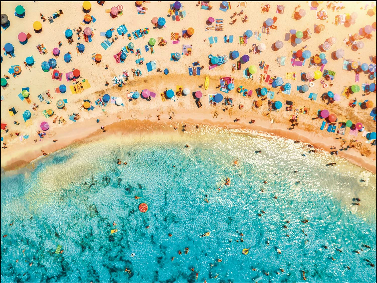Kodak 350 jigsaw puzzle – Aerial View of Sandy Beach with Colorful Umbrellas