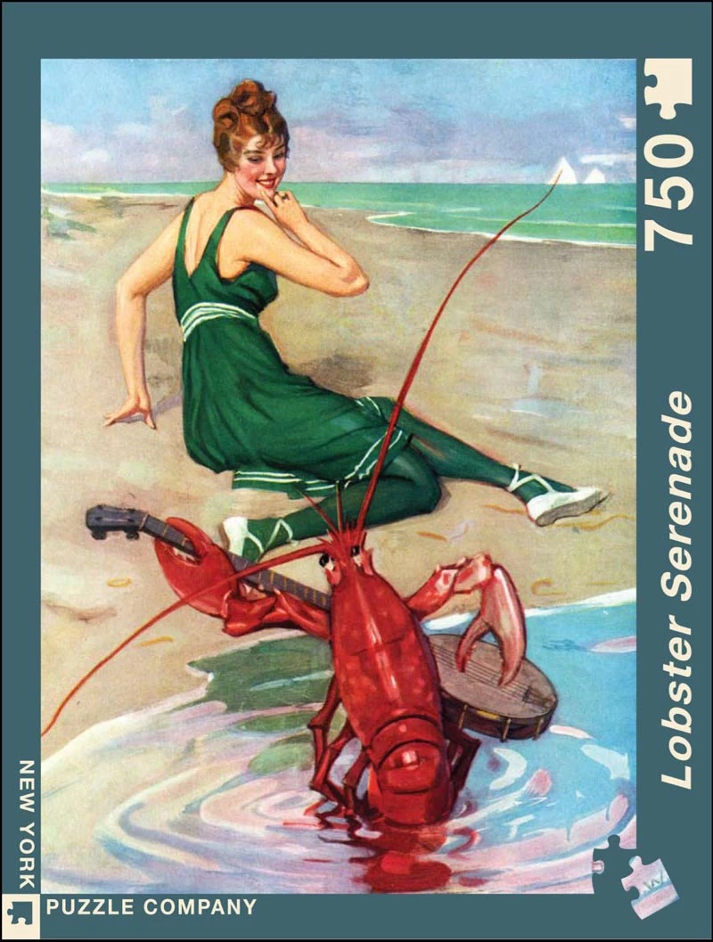 Lobster Serenade is part of the vintage 750 piece jigsaw puzzle series by New York Puzzle Co. Puzzle measures 18″ x 24″ when complete.