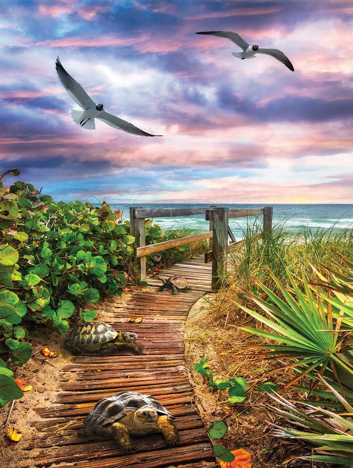 In this 500 piece jigsaw puzzle from Sunsout, it’s just a little bit further until the ideal beach getaway. Β Imagine all the fun you’ll have on those sandy shores as you assemble this nautical puzzle.
