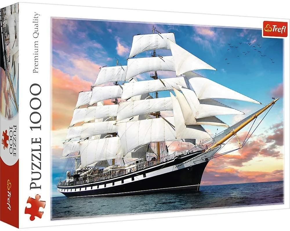 In this 1000 piece jigsaw puzzle from Trefl, it’s time to set sail onboard this impressive looking ship. Β Enjoy the open seas from the comfort of your living room, as you assemble this jigsaw puzzle.