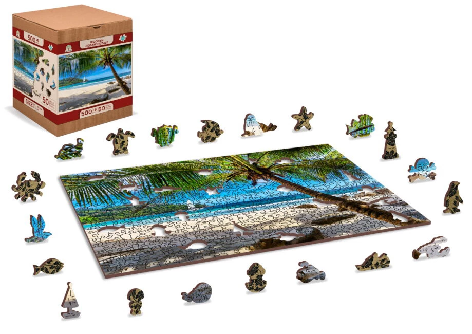 Wooden City Paradise Island Beach L puzzles offer a challenging and unique build, a fun playful experience, and a decorative show piece for years to come.